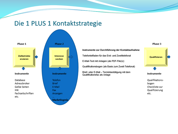 Durch die 1PLUS1 Strategie wird das Telefon(ieren) als Vertriebs- und Marketinginstrument einen wertvollen Beitrag zu Ihrem Unternehmenserfolg leisten.